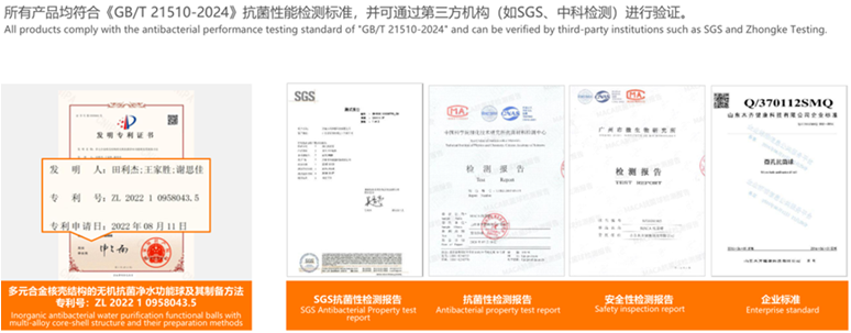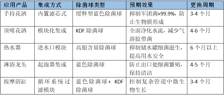 表1 纳米银除菌球与其他抗菌技术的性能对比 除了上述优势,纳米银除菌球还表现出优异的热稳定性与化学惰性,能够耐受沐浴产品中的水温变化及化学物质影响,保持长期性能稳定。其无毒环保的特性也得到多项安全性评价的验证,包括皮肤刺激性试验(结果为无刺激)和急性经口毒性试验(等级为实际无毒级),确保了在与人体接触场景中的安全应用。 3 沐浴产品微生物污染问题与健康风险 3.1 花洒与淋浴系统的细菌滋生 花洒内部常年积水、温度适宜且黑暗的环境,为微生物提供了理想的生长条件。研究发现,使用一段时间后的花洒内部可能含有多种致病菌,其中军团菌是最具威胁的病原体之一。这种细菌喜好栖息在25-42℃的温水中,恰好覆盖了大多数人使用的淋浴水温范围。当打开花洒时,水流会将这些细菌及其气溶胶带入空气,随着呼吸进入人体呼吸道,引发严重的肺部感染—军团菌病。据临床统计,军团菌肺炎的死亡率高达10%-30%,对免疫系统较弱的人群尤为危险。 除军团菌外,花洒和淋浴系统中还常见金黄色葡萄球菌、大肠杆菌和多种霉菌。这些微生物不仅形成生物膜附着在管道内壁,降低水流效率,影响设备使用寿命,还会在使用过程中传播到使用者皮肤表面。金黄色葡萄球菌可导致皮肤化脓性感染,而大肠杆菌则可能引起肠胃不适或尿路感染。传统花洒的清洁方法,虽能暂时减少微生物负荷,但效果不持久,且频繁使用可能腐蚀设备部件,影响花洒使用寿命。 3.2 浴室环境的交叉污染 浴室中的微生物污染不仅限于花洒本身。马桶冲水时产生的带菌气溶胶可扩散至1.5米范围内,污染牙刷、毛巾等个人用品。同时,浴室地面的积水、墙面瓷砖的接缝处以及通风不良的角落,都是霉菌滋生的高风险区域。这些霉菌释放的孢子在浴室密闭空间中浓度升高,被人体吸入后可能触发过敏反应或哮喘发作。 值得注意的是,传统抗菌花洒多采用化学消毒剂(如含氯化合物)抑制微生物生长,但这些化学物质可能刺激皮肤、引发过敏,并且在热水中挥发性增强,可能产生有害蒸汽。相比之下,集成纳米银除菌球的花洒系统通过物理机制实现抗菌作用,不引入化学物质,避免了二次污染的风险,为用户提供更为安全的淋浴体验。 4 纳米银除菌球在沐浴产品中的集成方案 4.1 花洒中的集成方案与抗菌效果 在花洒中集成纳米银除菌球主要采用内置滤芯的形式,将除菌球置于花洒头内部的特定腔室或过滤模块中。当水流通过花洒时,会充分接触除菌球表面,激活银离子的释放,形成富含抗菌离子的淋浴水。实验数据显示,优质纳米银除菌球对水中常见致病菌的抗菌率超过99.9%,能够有效抑制军团菌、大肠杆菌和金黄色葡萄球菌的生长。 具体而言,纳米银除菌球在花洒中的应用可实现三重防护效果:首先,对花洒内部流道进行持续自清洁,防止生物膜形成,保持水流畅通;其次,对流经的水体进行即时净化,杀灭水中存在的细菌;最后,在花洒表面形成抗菌保护层,防止细菌在出口处滋生。这种多层次的防护体系,确保了从源头到终端的全程抗菌保障。 根据木齐科技无机抗菌材料研发中心的产品测试数据,其蓝色缓释型除菌球在标准测试条件(10g球:100mL水,静置24小时)下,银离子溶出量稳定在0.8-0.85 ppm,远高于0.02 ppm的最低有效浓度。这一浓度范围既确保了强大的抗菌效能,又远低于世界卫生组织(WHO)规定的饮用水银离子安全限值(0.1 mg/L,即0.1 ppm)。对于一般家庭使用的花洒,根据其水流量和水压,内置15-30克纳米银除菌球即可提供3-6个月的持久防护,具体用量可根据公式"除菌球重量(克)≈ [目标水体体积(升)×10] ×安全系数(1.2至1.5)"进行计算。 4.2 其他沐浴产品的创新应用 纳米银除菌球的技术优势使其在各类沐浴产品中拥有广泛的应用潜力。除了花洒,还可集成于以下沐浴设备中: 智能热水器:在热水器的进水口或储水罐中设置纳米银抗菌模块,可有效抑制热水系统中军团菌和异养菌的繁殖,提高洗浴用水的生物安全性。特别是对于存储式热水器,纳米银除菌球能够解决长期储水导致的微生物滋生问题,提供更健康的洗浴热水。 淋浴龙头与管道系统:在龙头的起泡器位置或管道关键节点安装小型抗菌模块,可防止细菌在管道内壁附着和繁殖,减少生物膜形成,维持水质清洁。这类应用对除菌球的尺寸精度和流阻特性有特定要求,通常需要定制化开发。 浴室暖气与通风系统:部分高端浴室暖风机开始集成纳米银抗菌模块,对通过设备的空气进行消毒,抑制霉菌孢子在空气中的传播,改善浴室空气质量。纳米银的抗菌作用可在高湿度环境中保持稳定,适合此类特殊应用场景。 浴缸与按摩水疗系统:按摩浴缸和水疗设备的复杂管道系统是微生物滋生的高风险区域。集成纳米银除菌球可有效控制这些难以清洁的区域中的细菌和霉菌生长,降低用户感染风险。